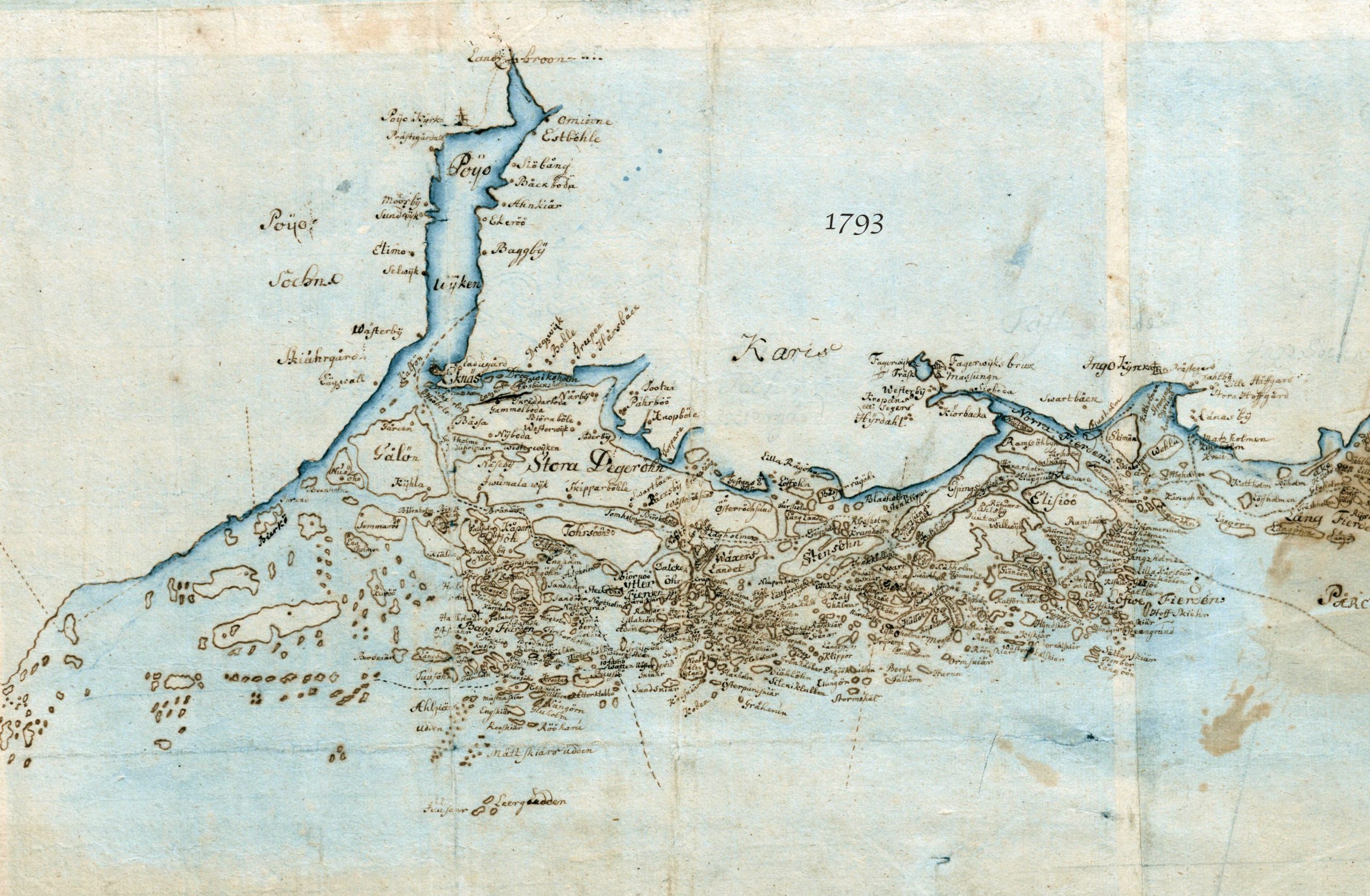 Kusten från Hangö till Pickala i ett rudimentärt sjökort