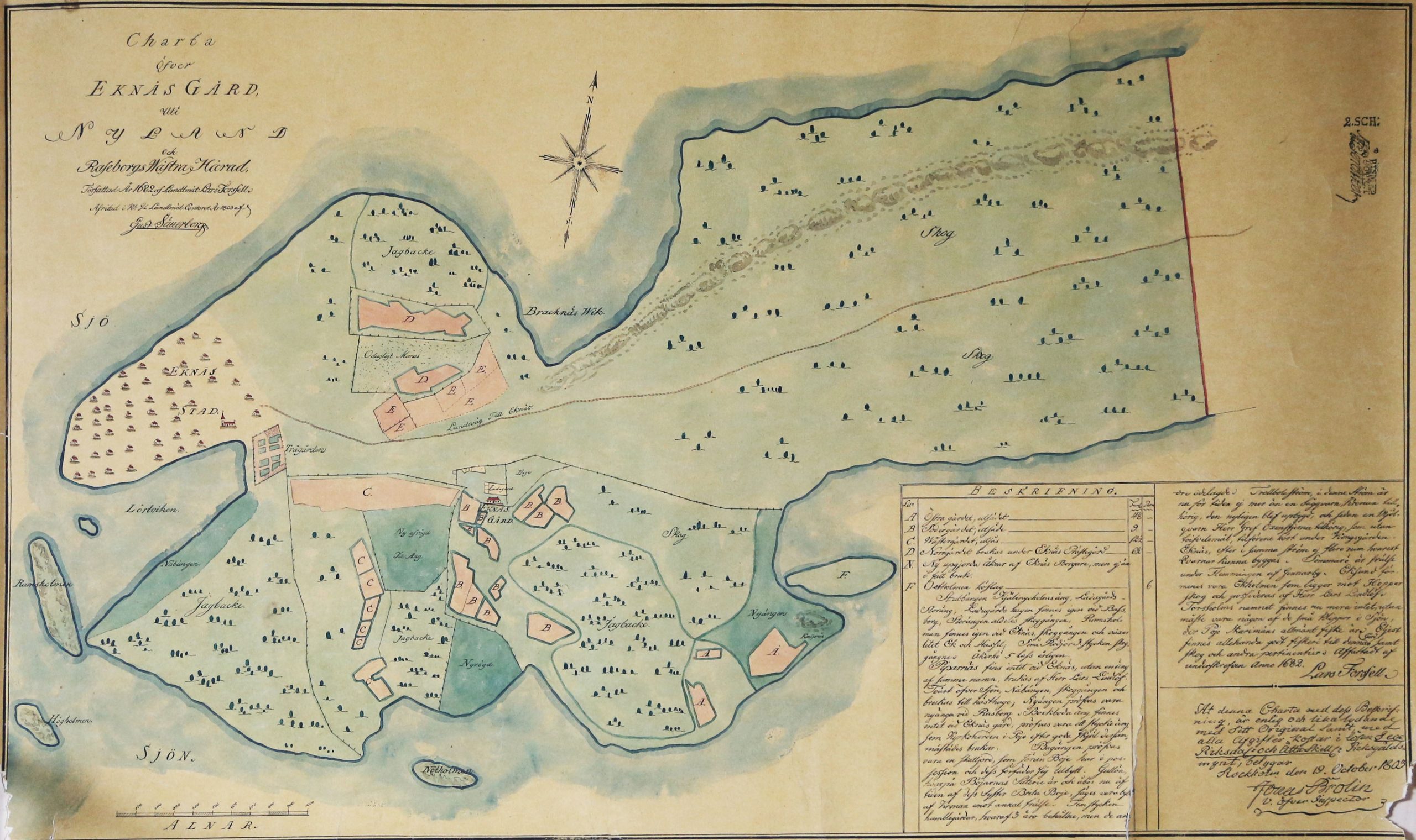 Forsells karta är äldst av de kända kartorna över Ekenäs. Här är inte byggnader och gator viktigast, utan betes- och jaktmarker utanför bebyggelsen. Byggnaderna anges som en klunga hus på nuvarande Barckens udde. Kyrkan och Ekenäs Gård, dvs kronans jordbruk på det som senare blev Seminarieområdet finns separat utritade.